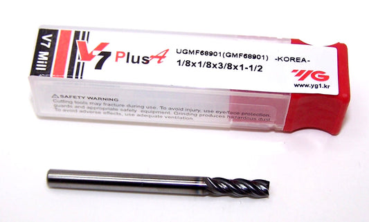 UGMF68901 YG1 1/8" Carbide 4 Flute End Mill Y Coating SQ .1250" Diameter 0.375" Flute 1.50" Length .125" Shank V7PLUSA