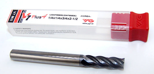 UGMF68905 YG1 1/4" Carbide 4 Flute End Mill Y Coating SQ .2500" Diameter .750" Flute 2.50" Length .250" Shank V7PLUSA