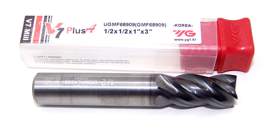 UGMF68909 YG1 1/2" Carbide 4 Flute End Mill Y Coating SQ .5000" Diameter 1.00" Flute 3.00" Length .500" Shank V7PLUSA