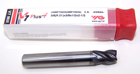 UGMF70024 YG1 3/8" Carbide 4 Flute End Mill .010" Radius Y Coating SQ .3750" Diameter 0.500" Flute 2.50" Length .375" Shank V7PLUSA