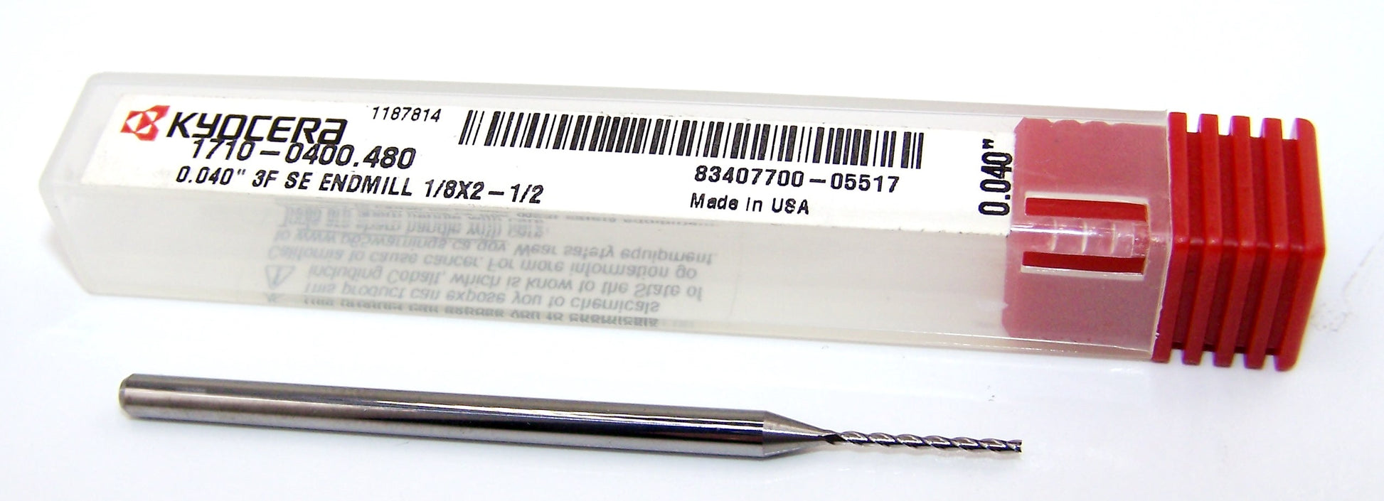 0.0400" CARBIDE END MILL 3 FLUTE #60 DIA .480"LOC EXTENDED LENGTH KYOCERA MICROTOOLS 1710-0400.480