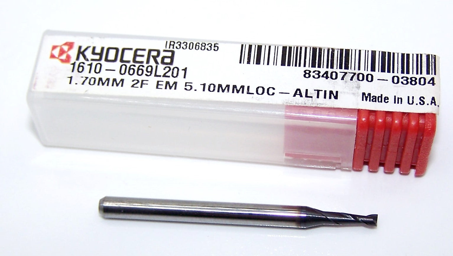 0.0669" CARBIDE END MILL 2 FLUTE 1.70mm DIA .201"LOC AlTiN - KYOCERA MICROTOOLS 1610-0669L201