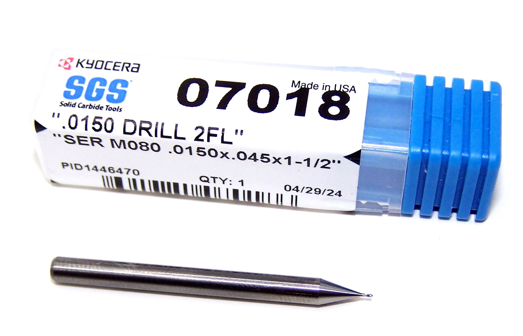 07018 Kyocera SGS .0150" Carbide 90° Spot Drill 2 Flute .0150" Diameter .045" Flute 1.50" Length .125" Shank