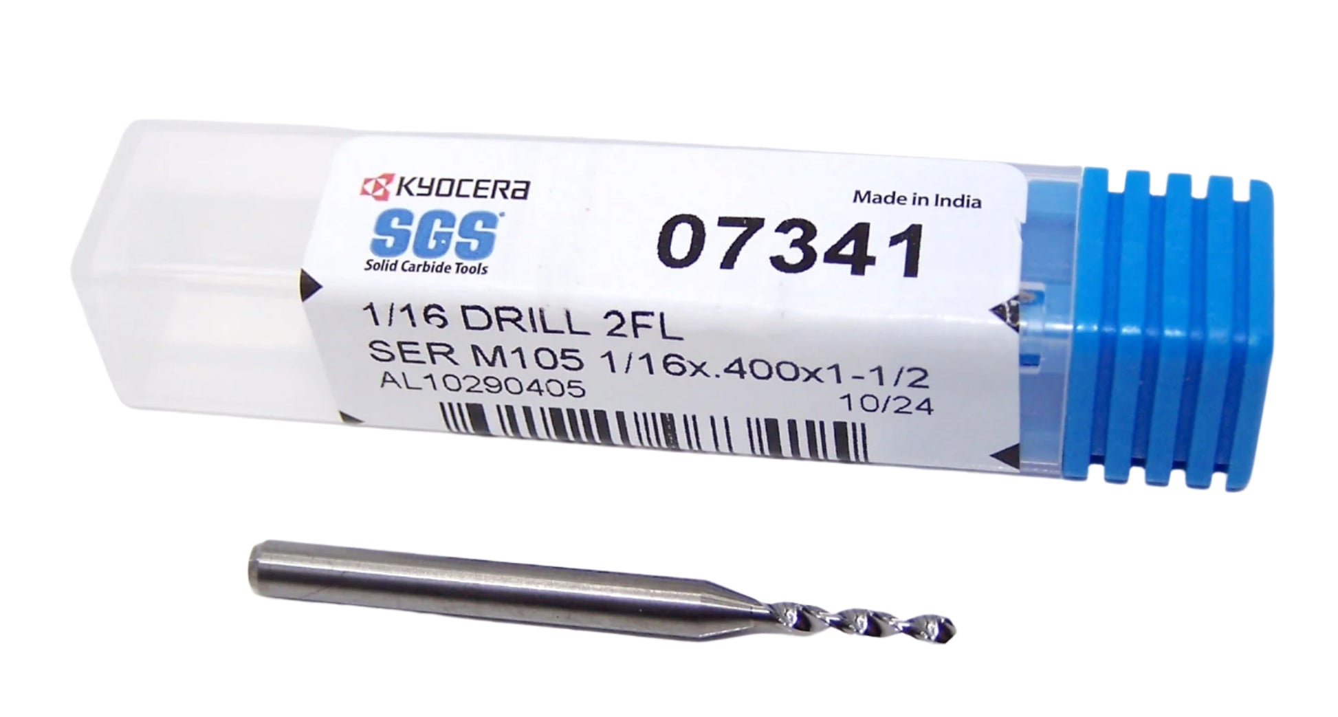 07341 Kyocera SGS 1/16" Carbide Drill 2 FLUTE 0.0625" Diameter .400" Flute 1.50" Length .125" Shank 130° Point