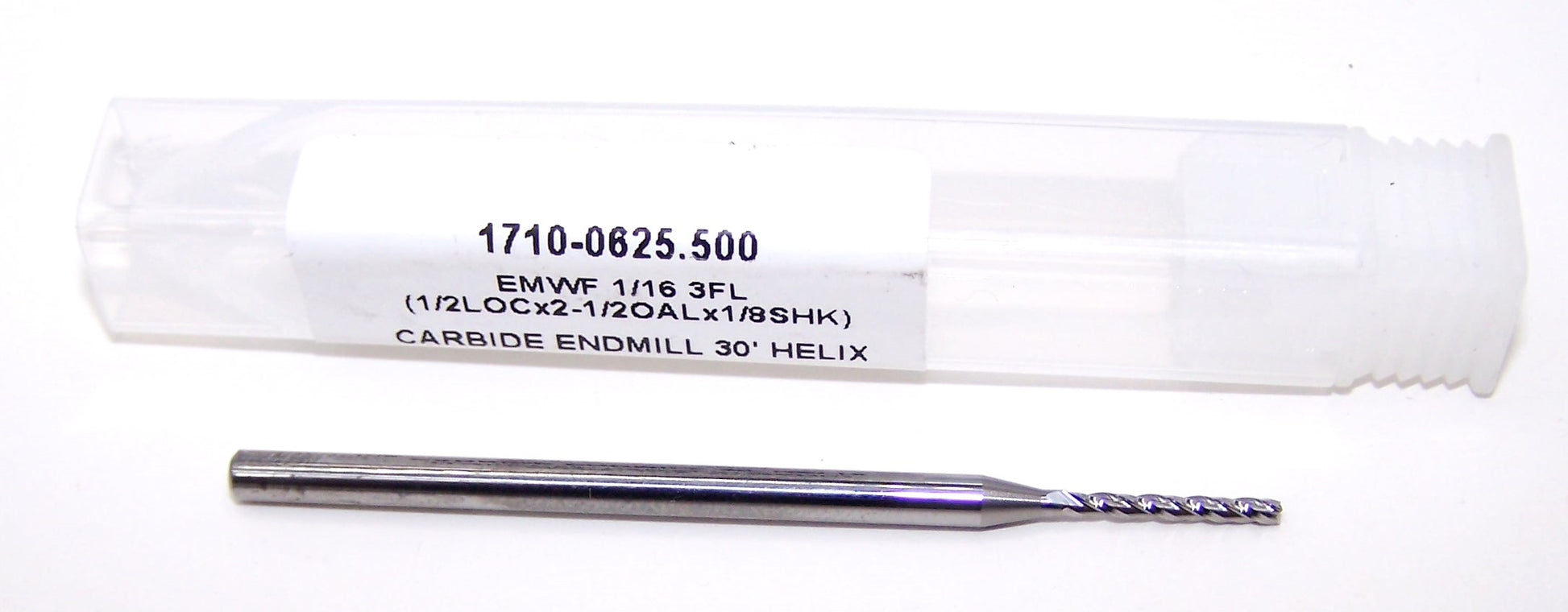 1710-0625.500 Oliver Tool 1/16" Carbide 3 Flute End Mill 0.0625" Diameter 0.500" Flute 2.50" Length 0.125" Shank
