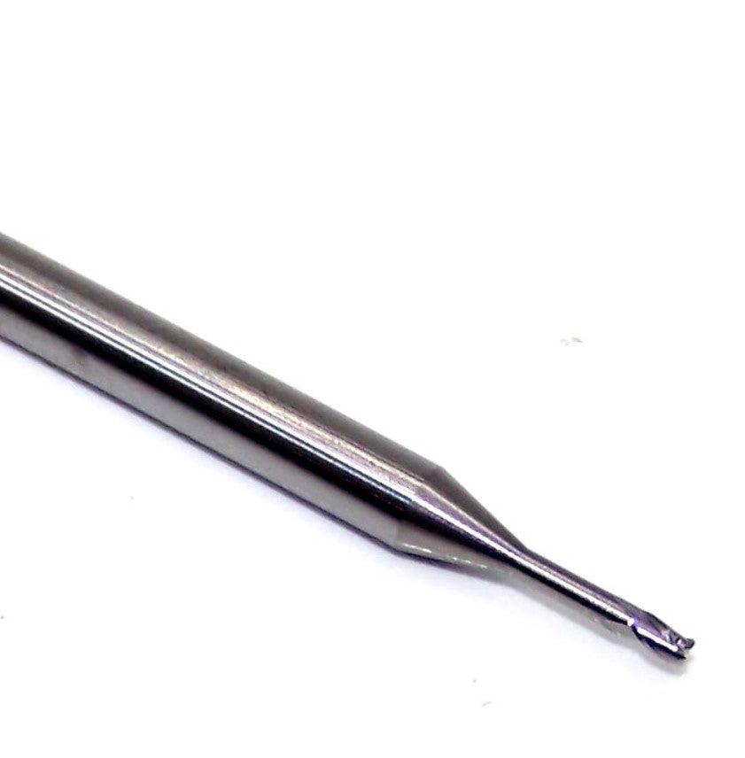 1744-0469.250CR Kyocera 3/64" Carbide 3 Flute End Mill .250" Extended Reach .010" Radius .0469" Diameter .070" Flute 2.50" Length .125" Shank