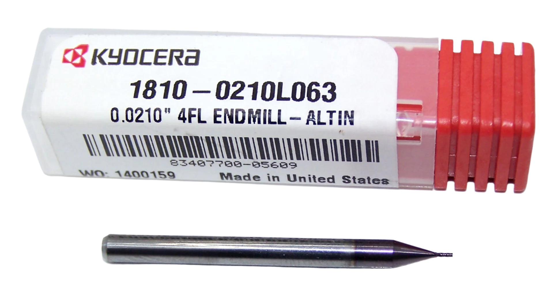1810-0210L063 Kyocera #75 Carbide 4 Flute End Mill AlTiN Coated .0210" Diameter .063" Flute 1.50" Length .125" Shank