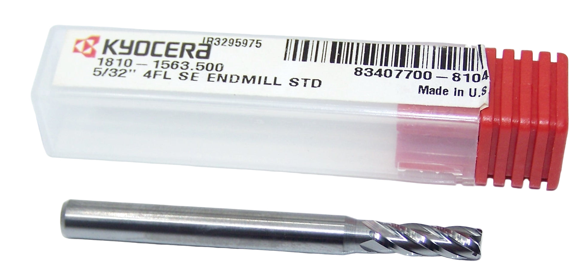 1810-1563.500 Kyocera 5/32" Carbide 4 Flute End Mill 0.1563" Diameter 0.500" Flute 2.0" Length 0.1875" Shank