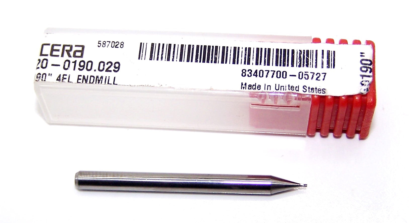 1820-0190.029 Kyocera 0.0190" Carbide 4 Flute End Mill 0.0190" Diameter 0.029" Flute 1.5" Length 0.125" Shank