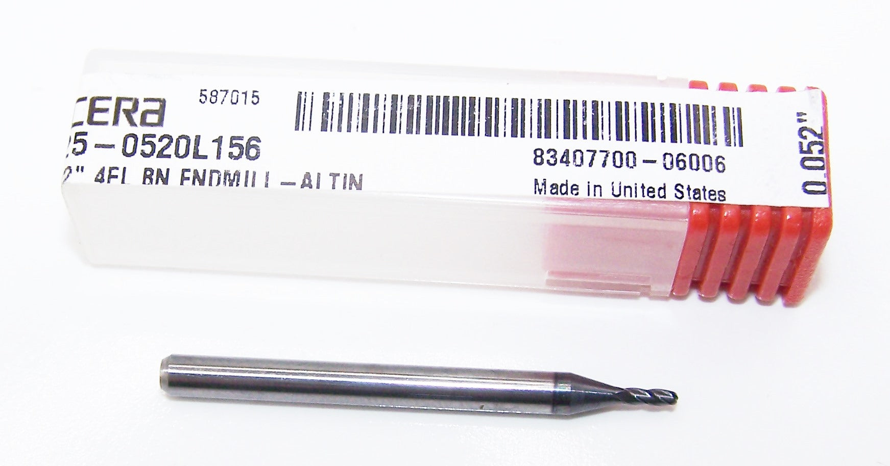 1825-0520L156 Kyocera #55 Carbide 4 Flute End Mill Ball End AlTiN .0520" Diameter .156" Flute 1.50" Length .125" Shank