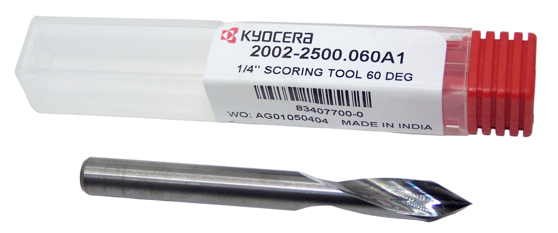 2002-2500.060A1 Kyocera 1/4" Carbide Chamfer and Engraving Bit 60° Included Point 2 FLUTE .250" Diameter 2.50" Length .250" Shank
