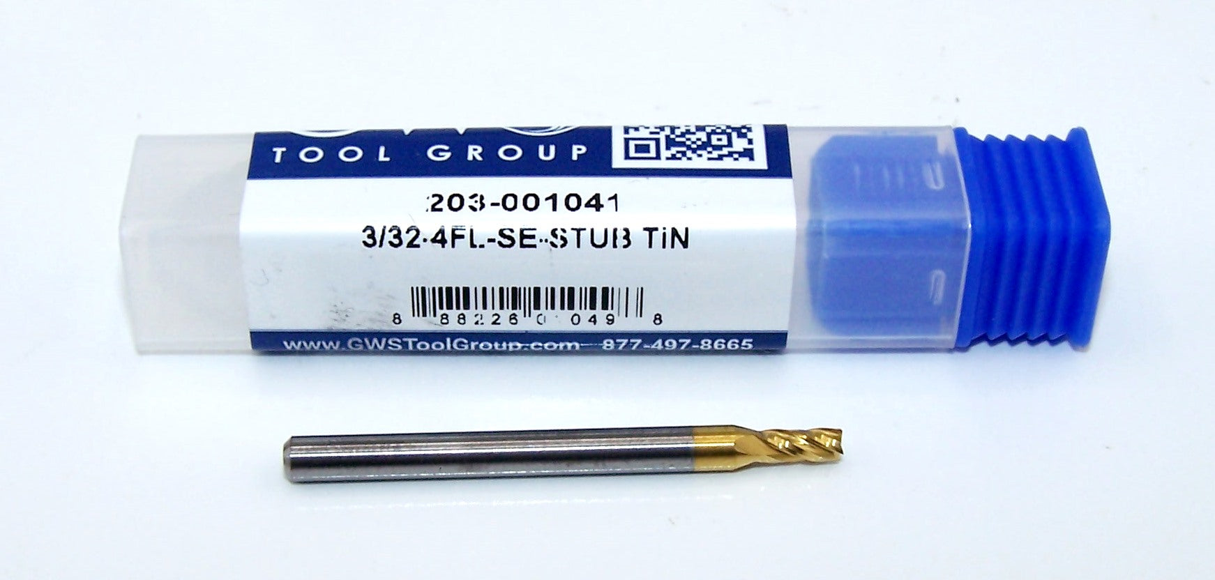 203-001041 Monster Tool 3/32" Carbide 4 Flute End Mill Stub Length TiN Coated .0938" Diameter 0.1875" Flute 1.5" Length 0.125" Shank GWS Tool Group