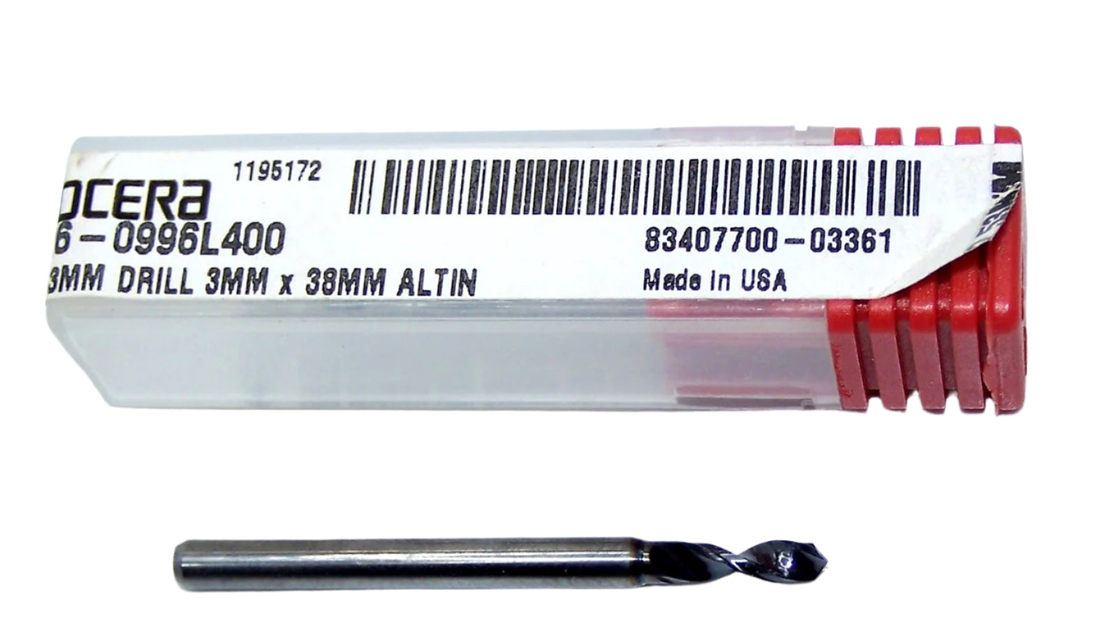 226-0996L400 Kyocera 2.53mm Carbide Drill 2 FLUTE ALTiN Coated 0.0996" Diameter 0.400" Flute 1.5" Length 0.1181" Shank 130° Point