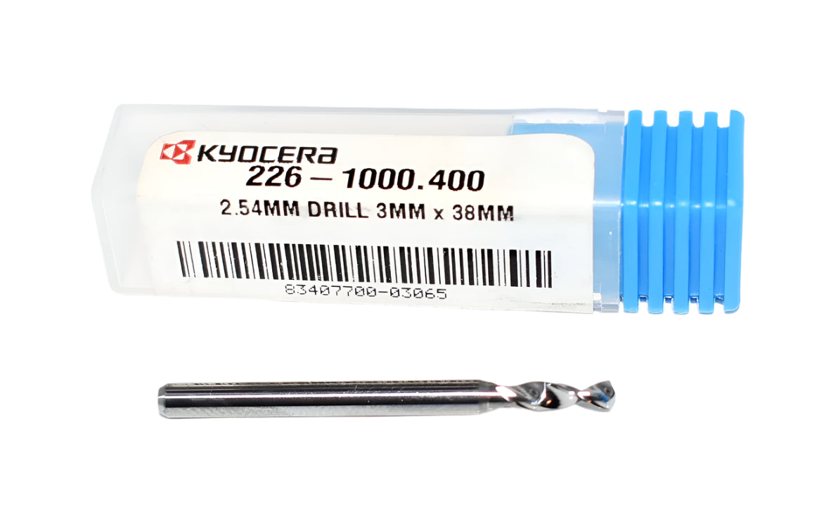 226-1000.400 Kyocera 2.54mm Carbide Drill 2 FLUTE 0.1000" Diameter 0.400" Flute 1.5" Length 0.1181" Shank 130° Point