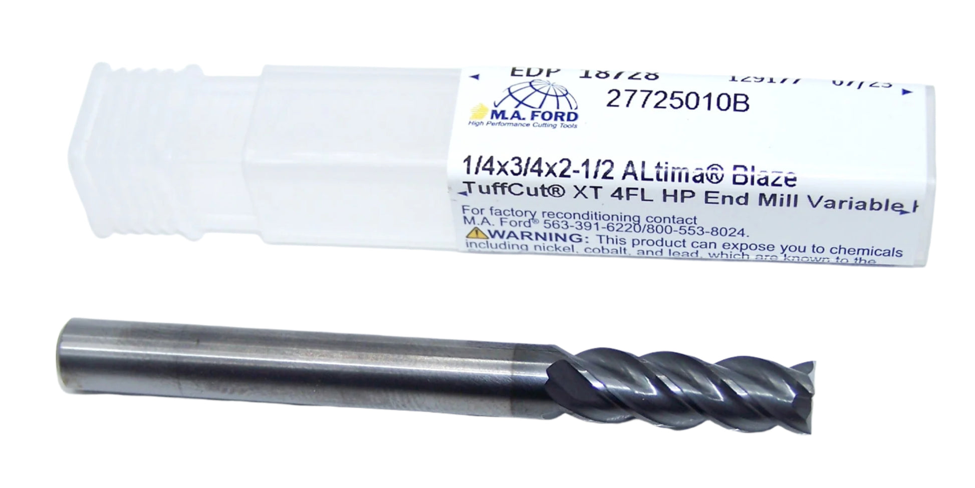27725010B MAFORD 1/4" Carbide 4 Flute End Mill SQ .2500" Diameter .750" Flute 2.50" Length .250" Shank (18728) TuffCut XT