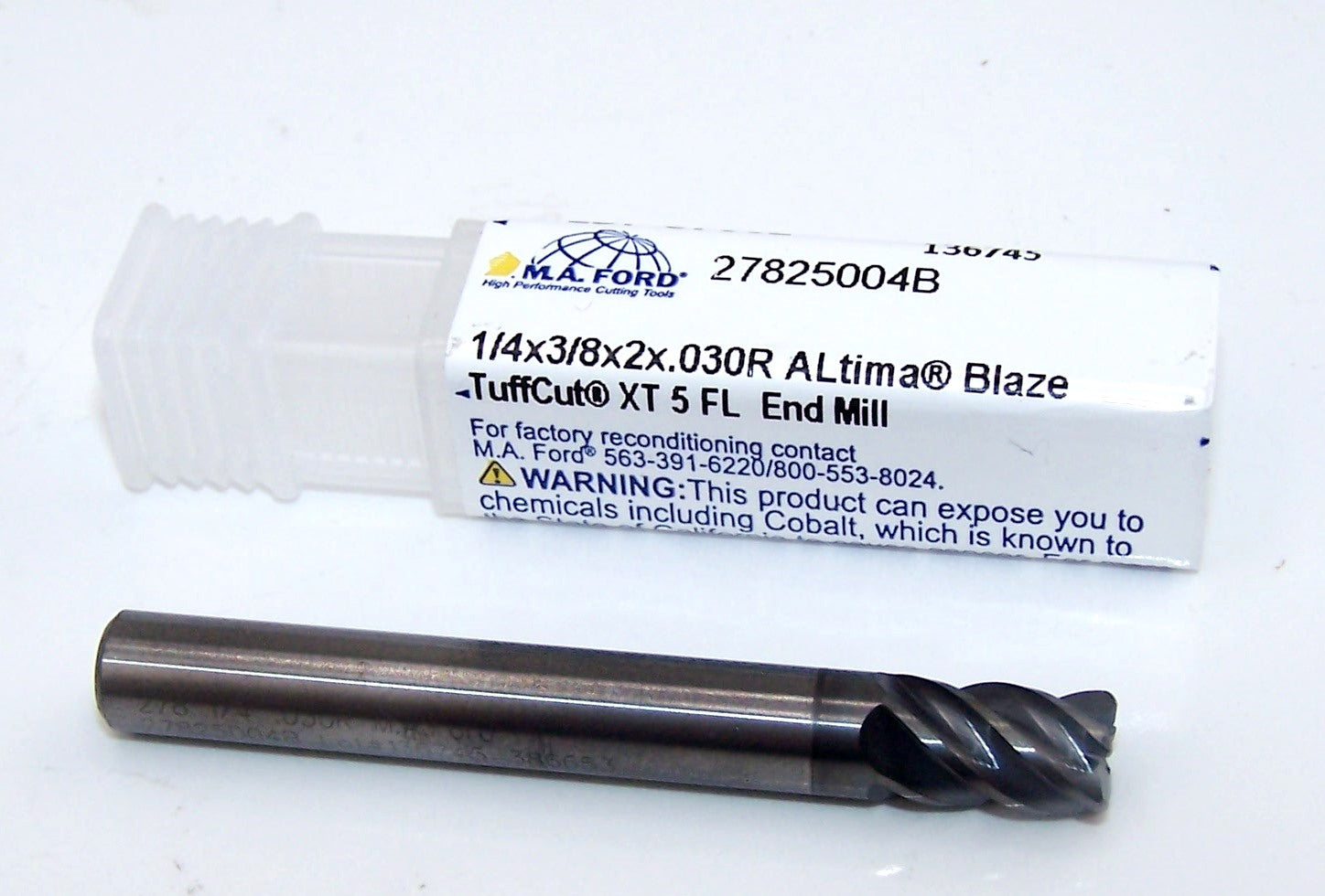 27825004B MAFORD 1/4" Carbide 5 Flute End Mill .030" Radius .2500" Diameter .375" Flute 200" Length .250" Shank (37002)