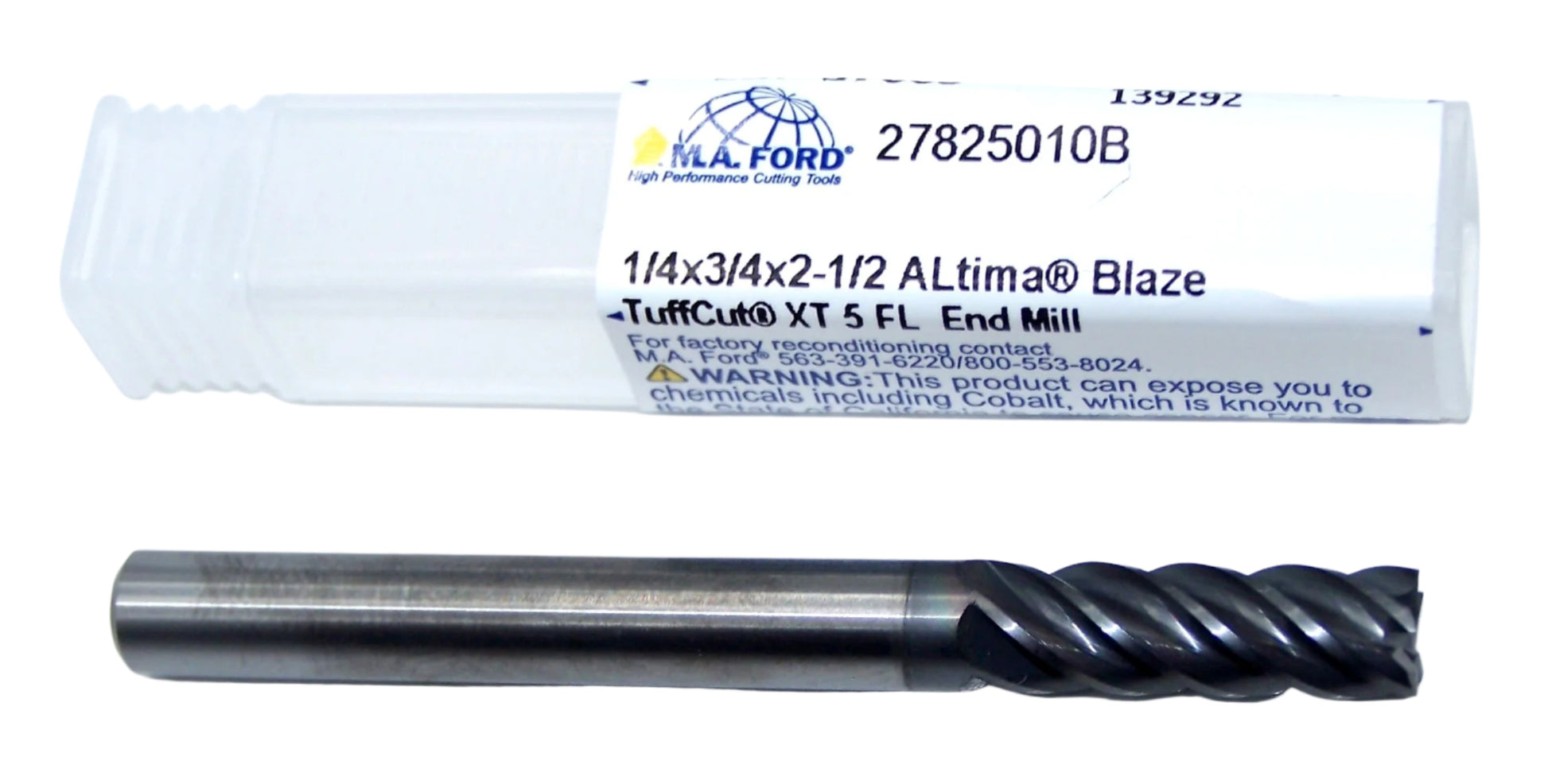 27825010B MAFORD 1/4" Carbide 5 Flute End Mill SQ .2500" Diameter .750" Flute 2.50" Length .250" Shank (37003)