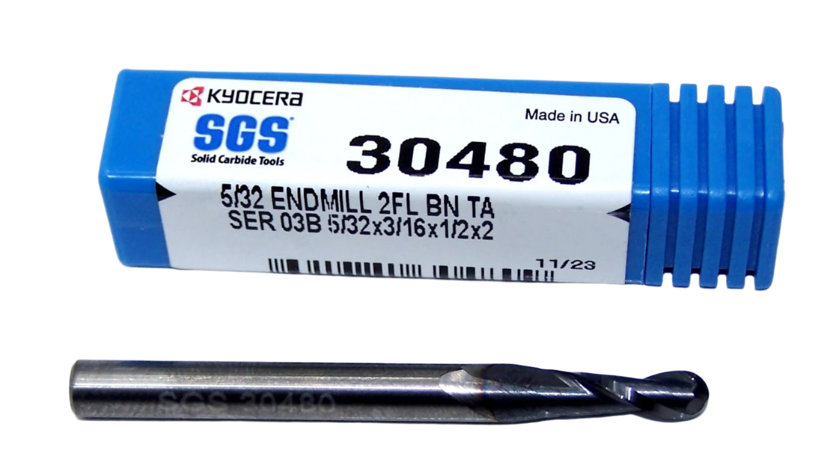 30480 Kyocera SGS 5/32" Carbide 2 Flute End Mill Ball End AlTiN Coated .1562" Diameter .500" Flute 2.00" Length .1875" Shank