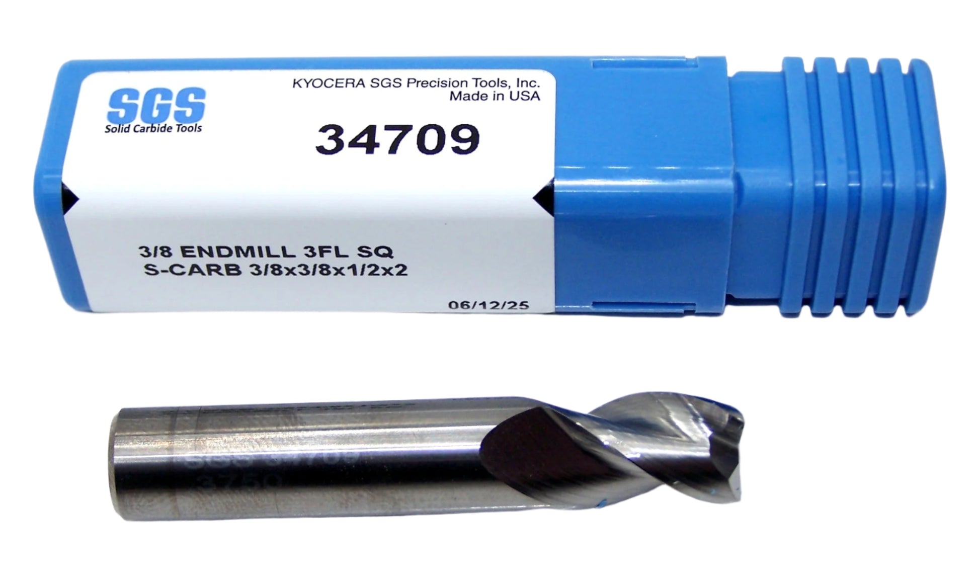 34709 Kyocera SGS 3/8" Carbide 3 Flute End Mill S-Carb Square 0.3750 Diameter .500 Flute 2.00 Length .375 Shank