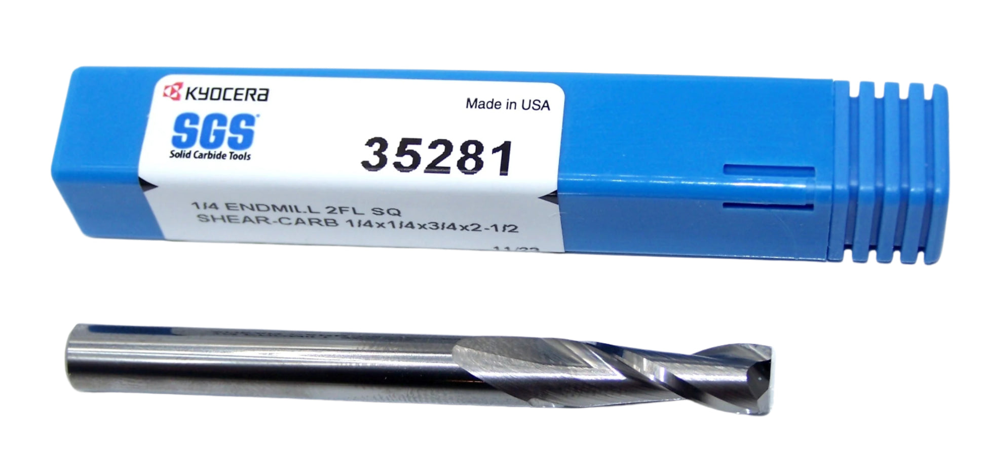 35281 Kyocera SGS 1/4"CARBIDE 2 Flute End Mill SHEAR-CARB .250" Diameter 0.75"Flute 2.5" OAL .250" Shank