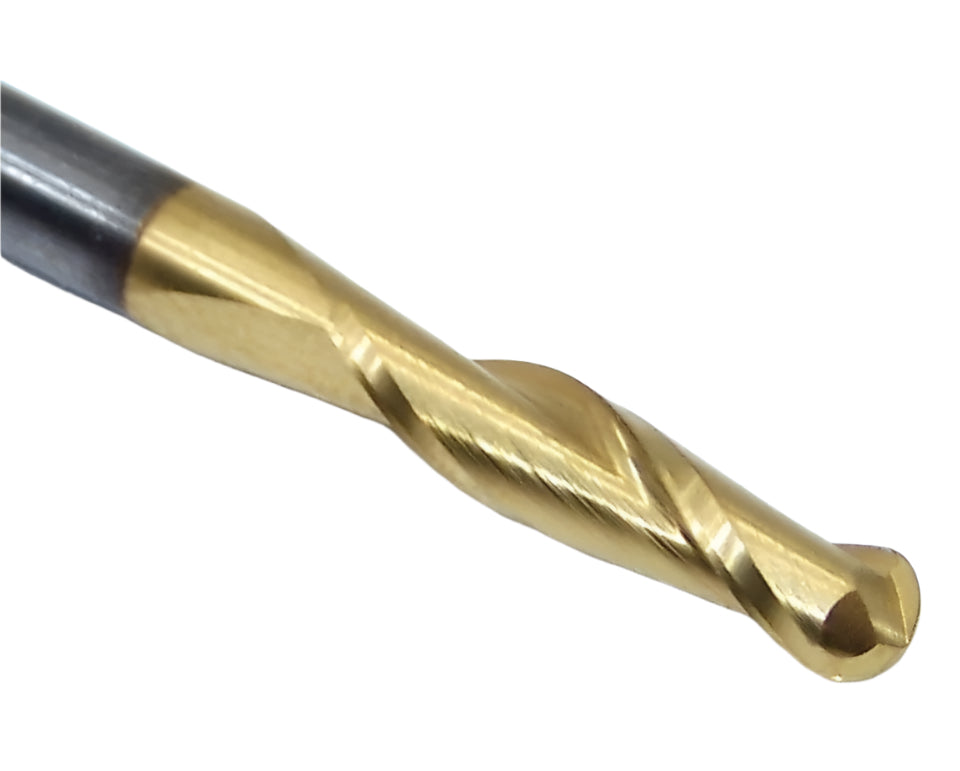 39316 Kyocera SGS 1/8" Carbide 2 Flute End Mill Ball End TiN .125" Diameter .500" Flute 1.50" Length .125" Shank