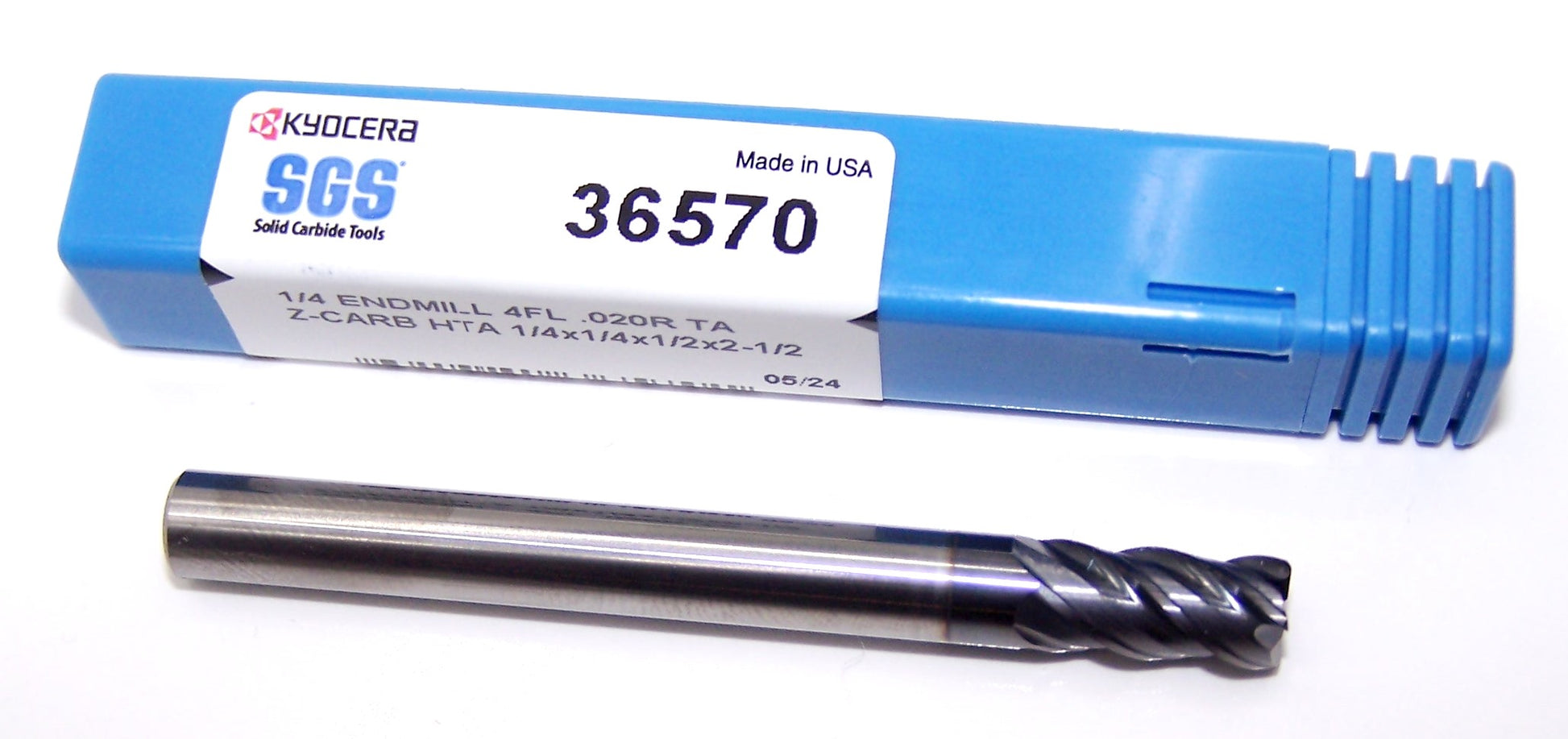 36570 Kyocera SGS 1/4" Carbide 4 Flute End Mill .020" Radius .250" Diameter .500" Flute 2.50" Length .250" Shank Z-Carb HTA