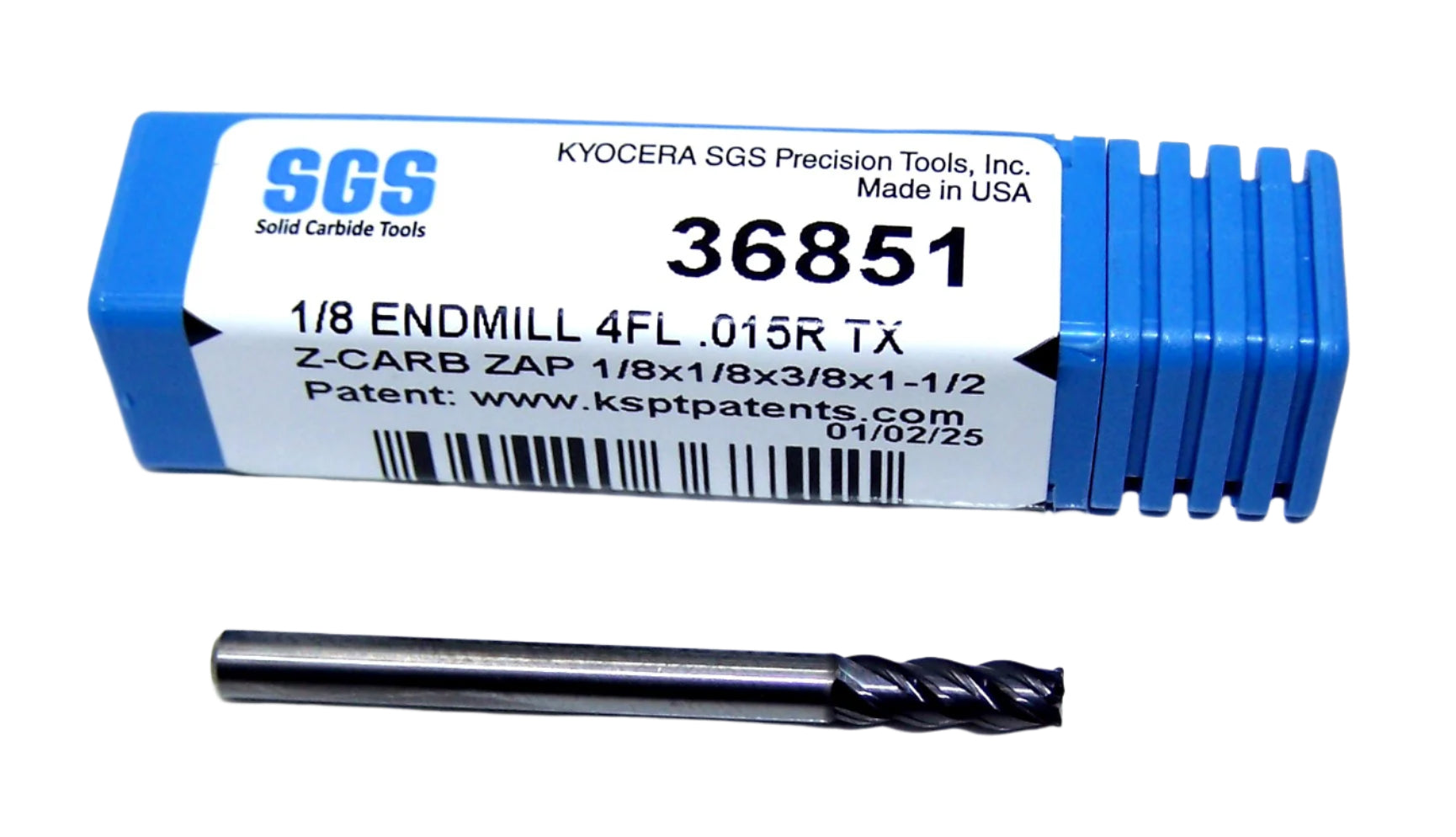 36851 Kyocera SGS 1/8" Carbide 4 Flute End Mill .015" Radius .125" Diameter .375" Flute1.50" Length .125" Shank Z-Carb AP