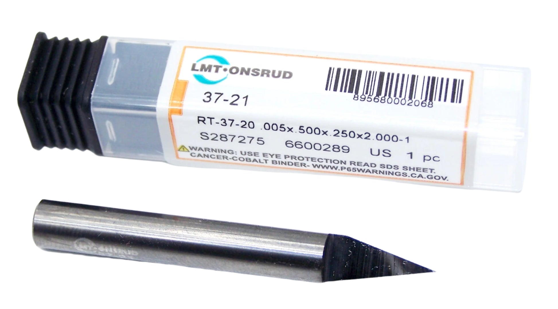 37-21 Onsrud 30° Carbide Tip V Groove Router Bit .005" Tip .250" Diameter 2.00" Length .250" Shank