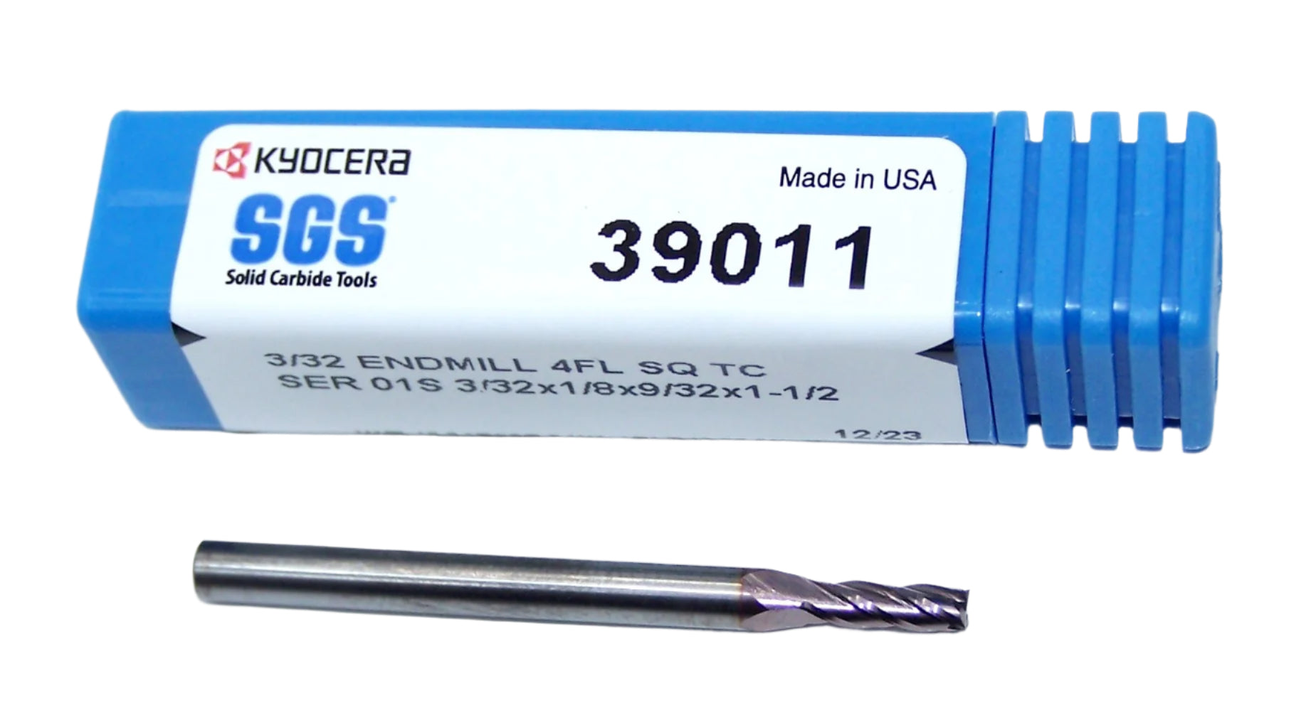 39011 Kyocera SGS 3/32" Carbide 4 Flute End Mill SQ TiCN .0938" Diameter .281" Flute 1.50" Length .125" Shank