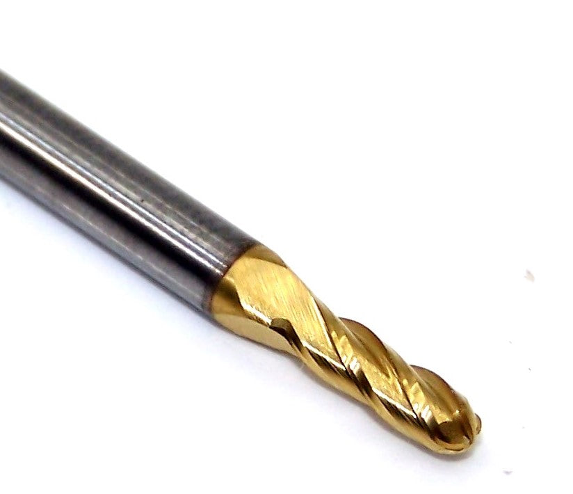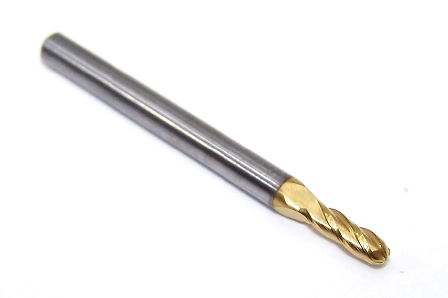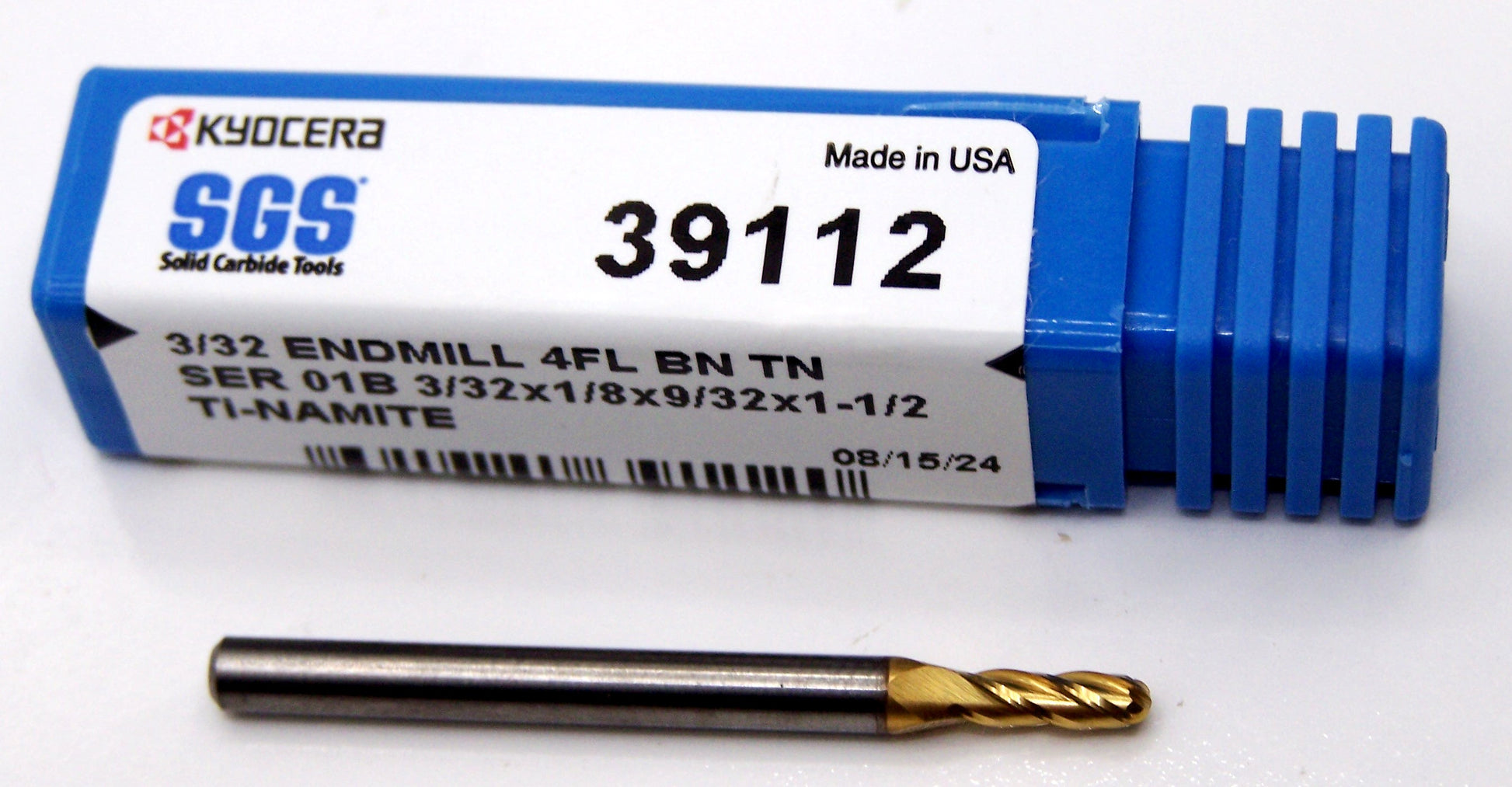 39112 Kyocera SGS 3/32" Carbide 4 Flute End Mill Ball TiN Coated .0938" Diameter .281" Flute 1.50" Overall Length .125" Shank