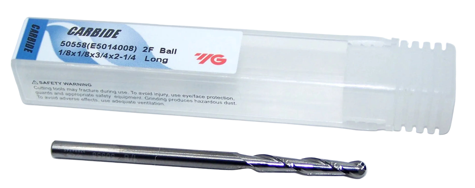 50558 YG1 1/8" Carbide 2 Flute End Mill Ball End .125" Diameter .750" Flute 2.25" Length .125" Shank