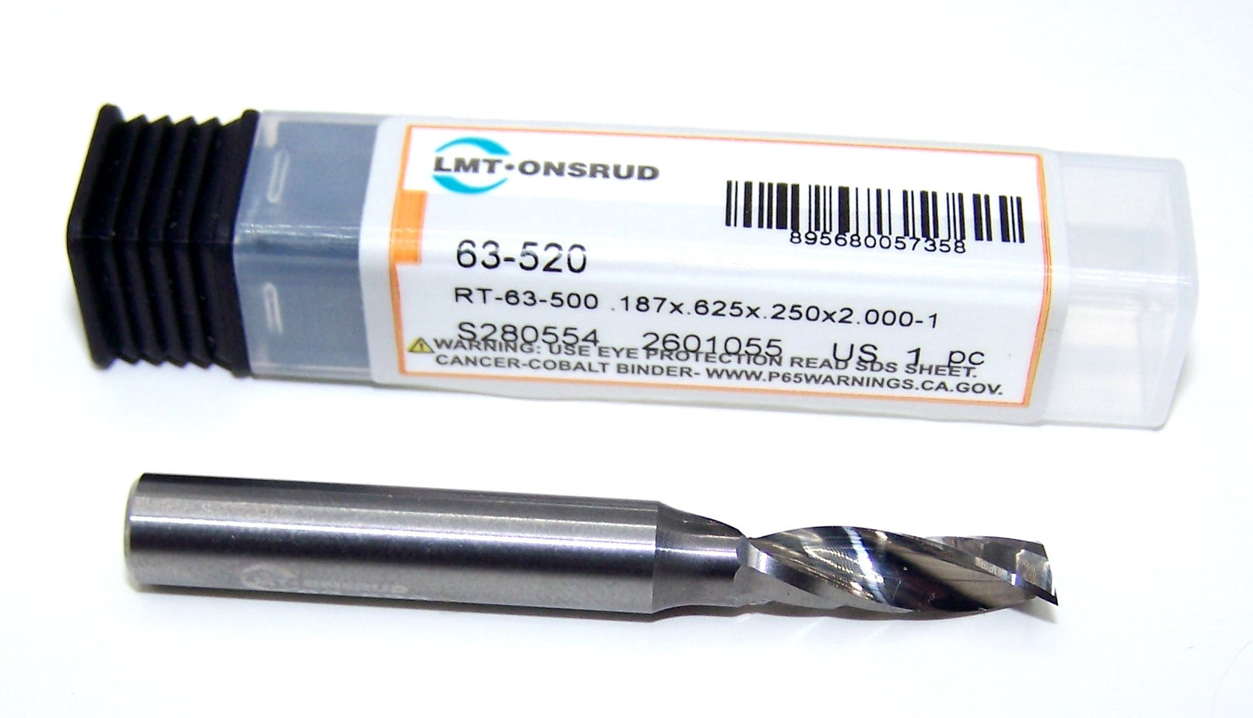 63-520 Onsrud 3/16" Carbide 1 Flute Router for Acrylic .1875" Diameter .625" Flute 2.00" Length .250" Shank