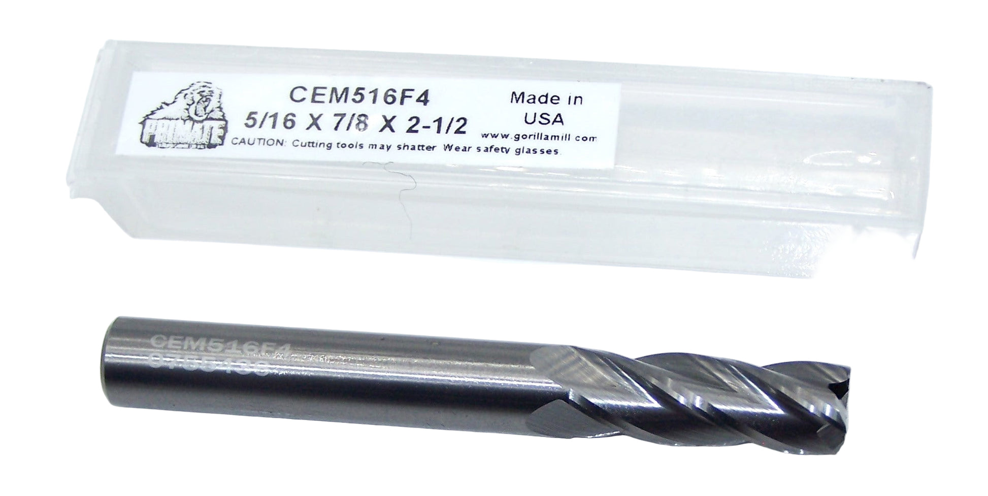 71227 Gorilla Mill 5/16" Carbide 4 Flute End Mill SQ .3125" Diameter .875" Flute 2.50" Length .313" Shank