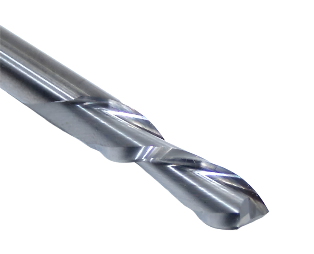 Tool designed for routing where downward chip removal, tool rigidity, long life, and high quality finish is desired.
