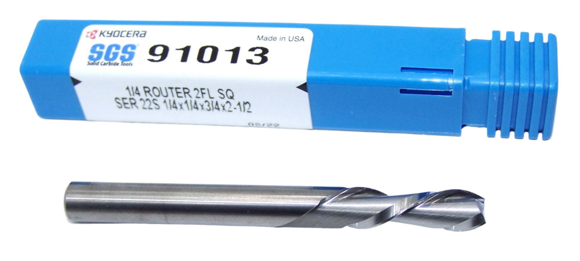 91013 SGS 1/4" Carbide 2 Flute Down Cut Router End Mill .250" Diameter 0.750" Flute 2.50" Length .250" Shank