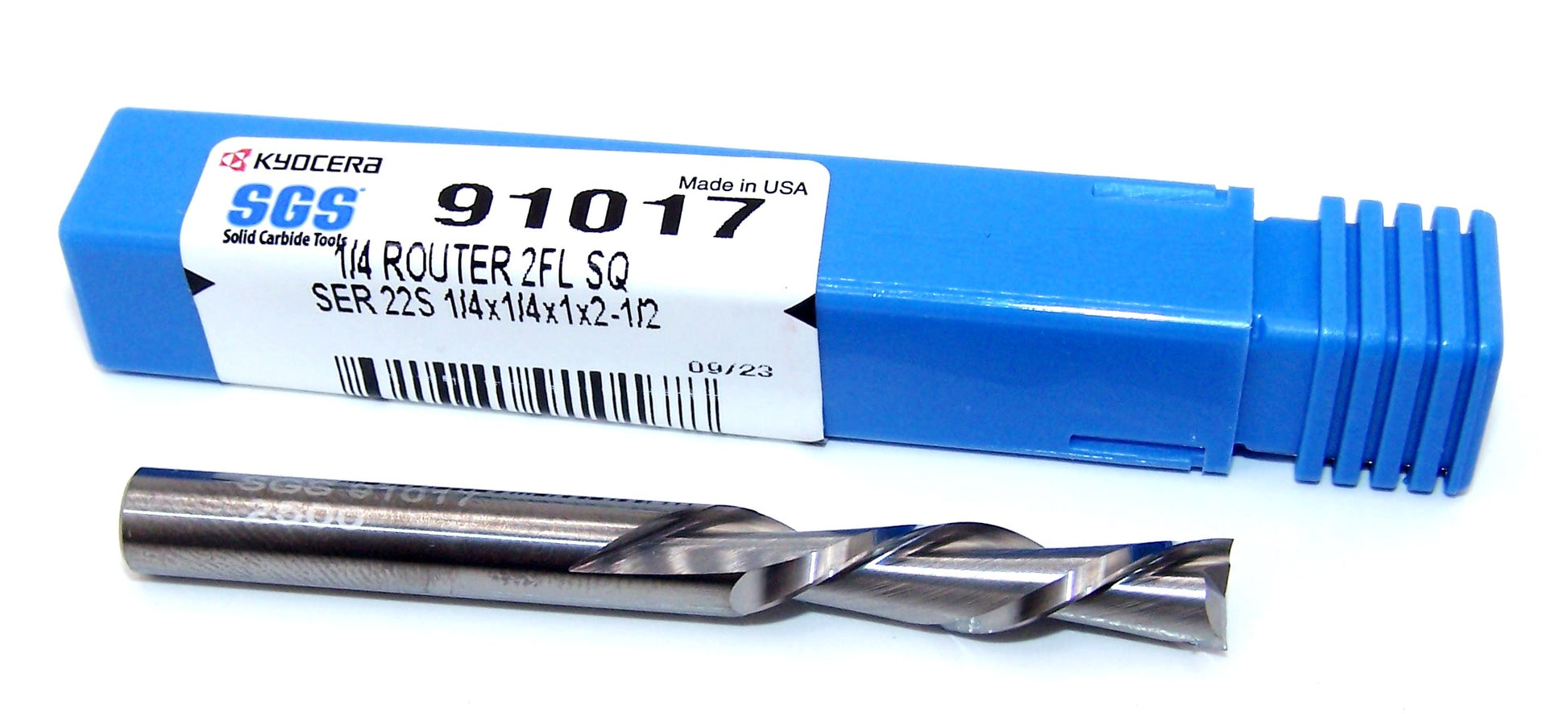91017 SGS 1/4" Carbide Down Cut Router 2 Flute .250" Diameter 1.00" Flute 2.50" Length .250" Shank