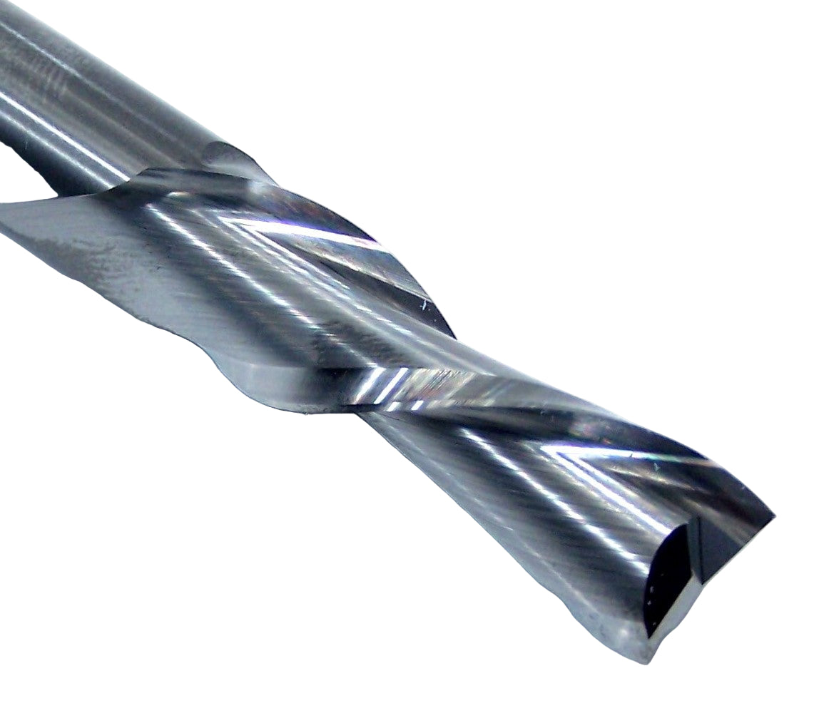 Tool designed for routing where downward chip removal, tool rigidity, long life, and high quality finish is desired.