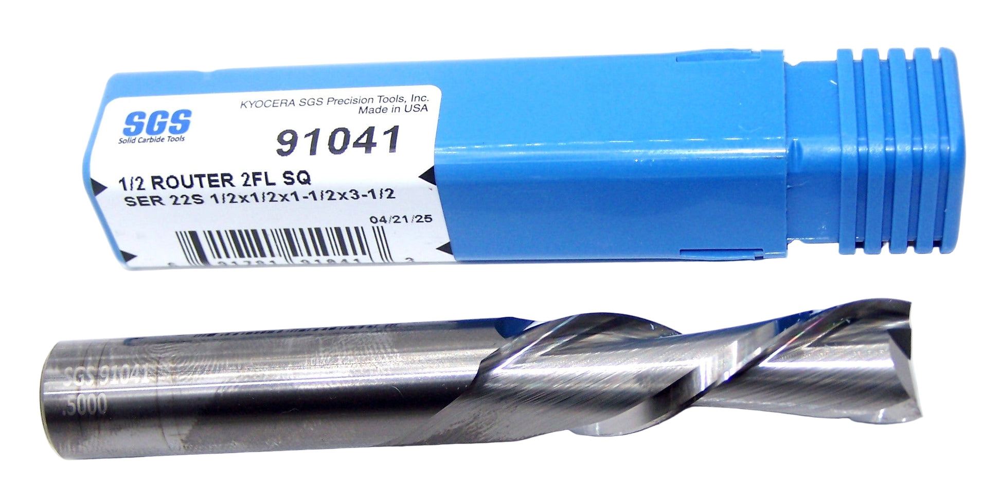 91041 SGS 1/2" Carbide 2 Flute Down Cut Router End Mill .500" Diameter 1.50" Flute 3.50" Length .500" Shank