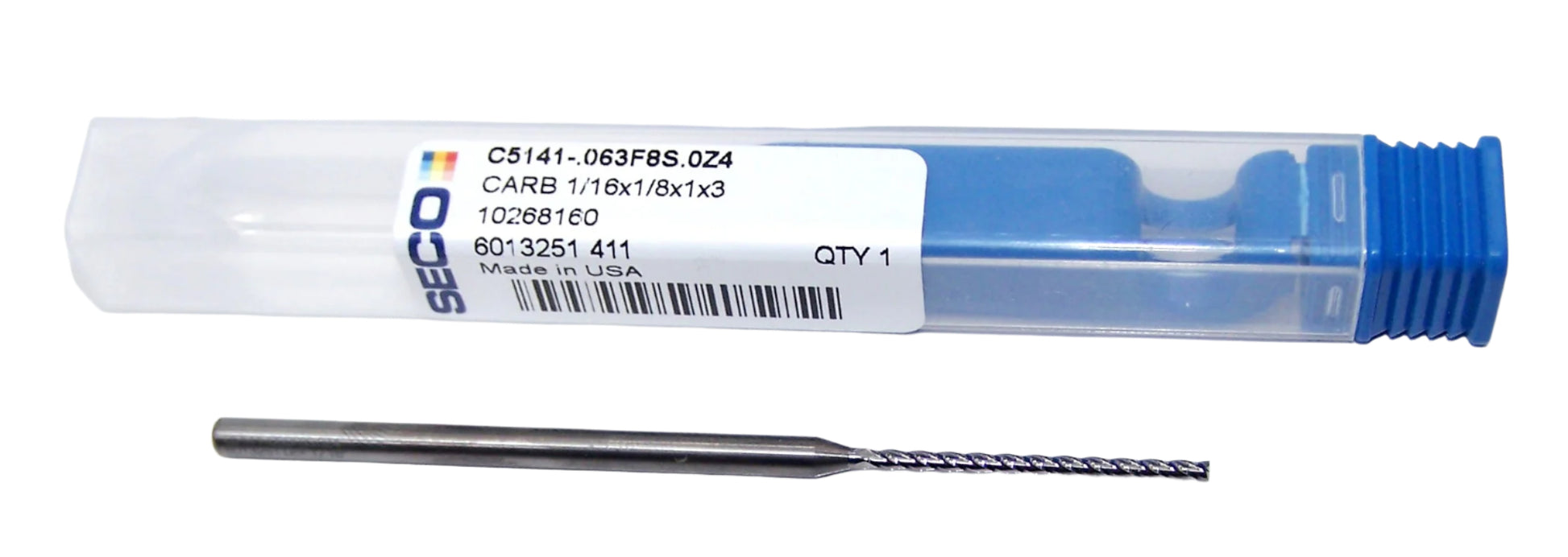 C5141-.063F8S.0Z4 Seco 1/16" Carbide 4 Flute End Mill Extended Length 0.0630" Diameter 1.00" Flute 3.00" Length .125" Shank