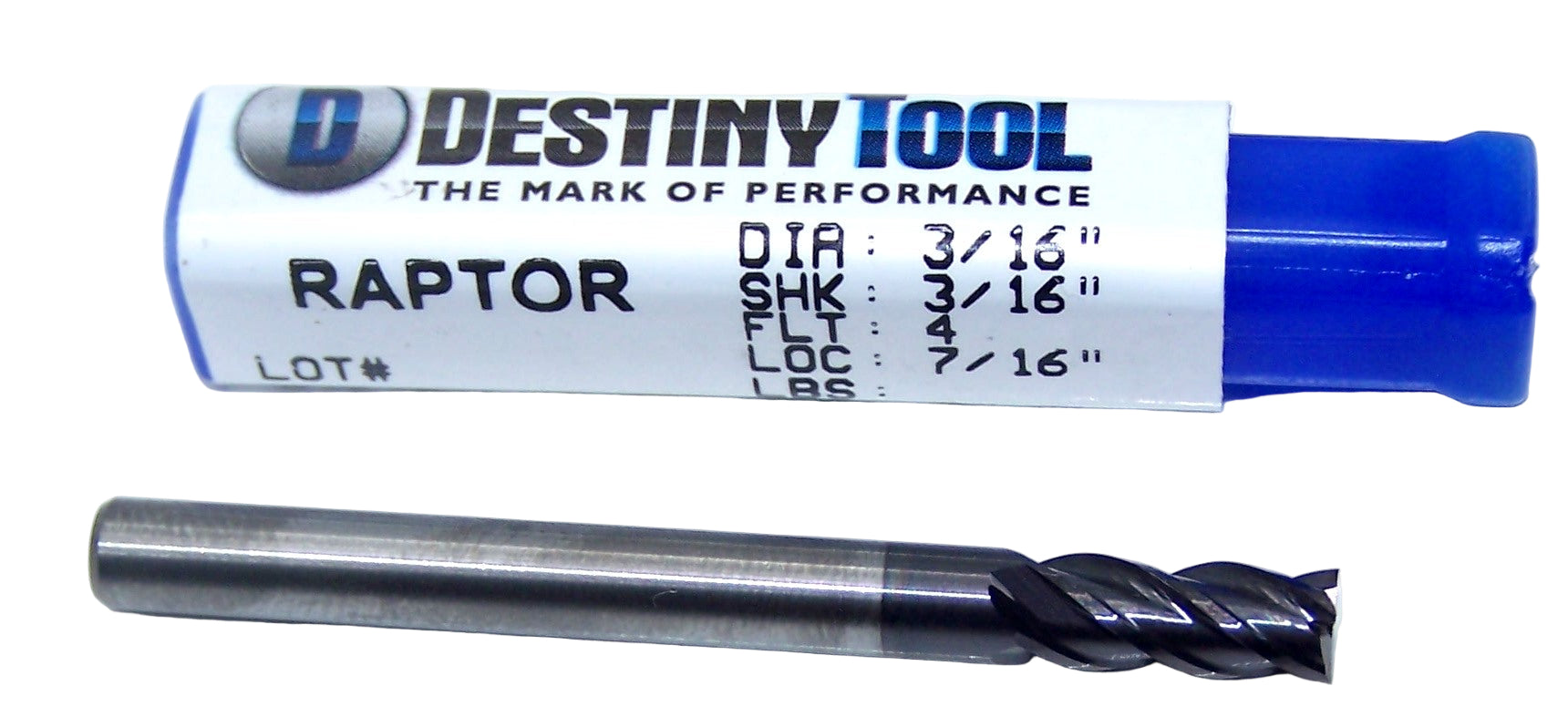 DVH41207C Destiny Tool 3/16" Carbide 4 Flute End Mill Square TiAlN .1875" Diameter .4375" Flute 2.0" Length .1875" Shank