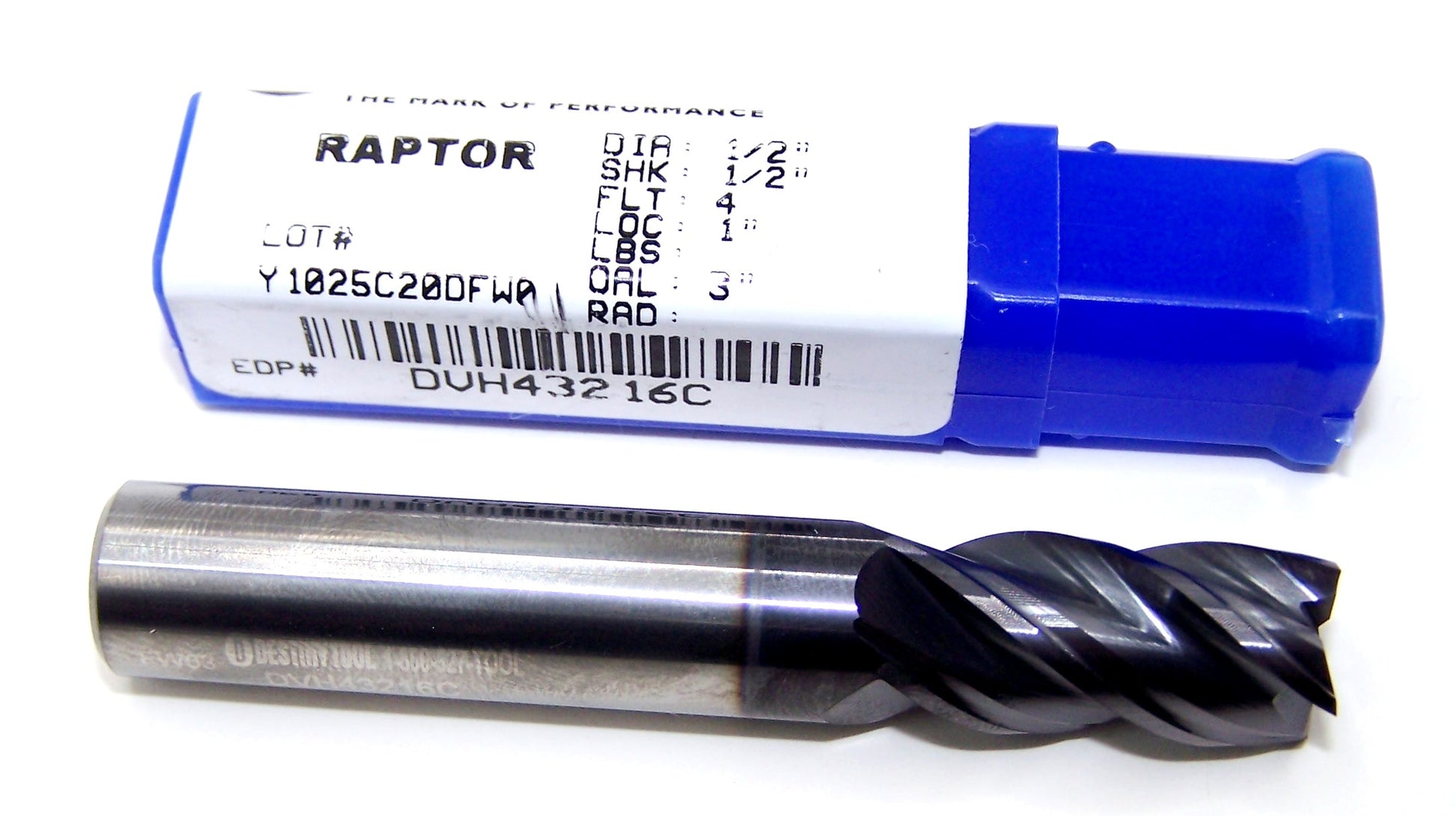 DVH43216C Destiny Tool 1/2" Carbide 4 Flute End Mill Square TiAlN .500" Diameter 1.00" Flute 3.00" Length