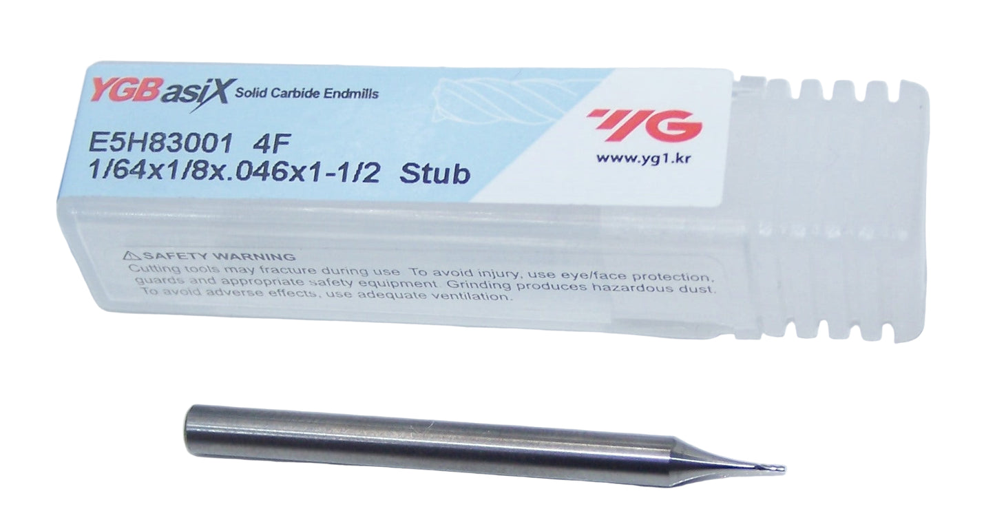 E5H83001 YG1 1/64" Carbide 4 Flute End Mill .0156" Diameter .046" Flute 1.50" Length .125" Shank