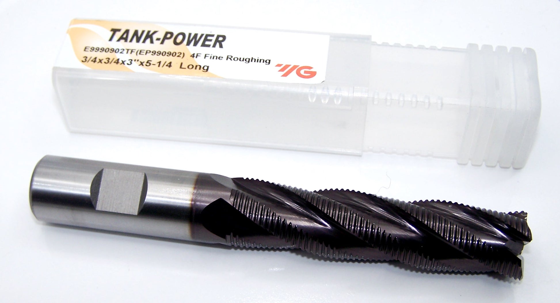 E9990902TF YG1 3/4" Powered Metal 4 Flute Roughing End Mill SQ TiAlN .750" Diameter 3.0" Flute 5.25" Length .750" Shank Tank Power