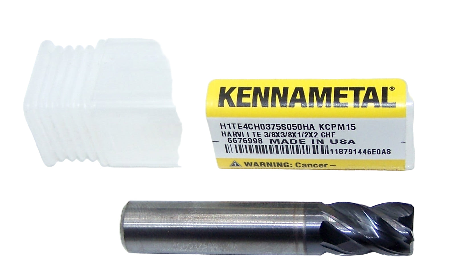 H1TE4CH0375S050HA KCPM15 Kennametal 3/8" Carbide 4 Flute End Mill .020" End Chamfer .375" Diameter .500" Flute 2.0" Length .375" Shank 6676998