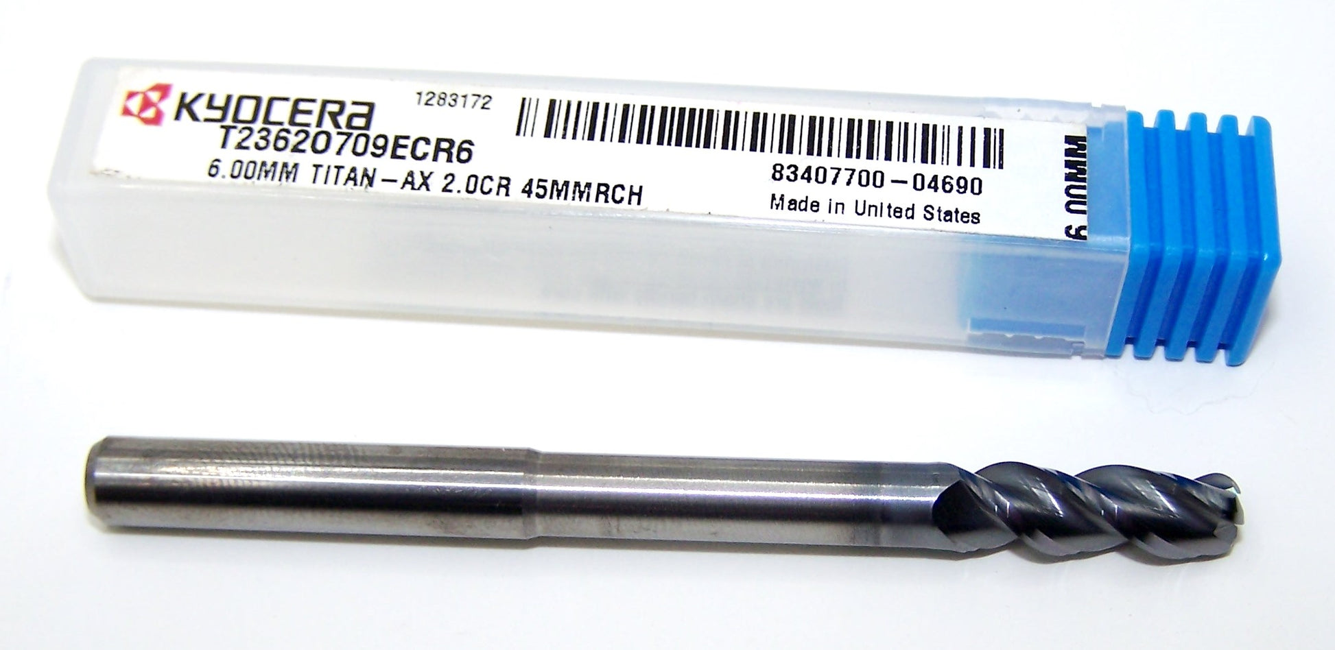 T2362O709ECR6 Kyocera Microtools 6.00mm Carbide 3 Flute End Mill .0787" Radius 1.77" Reach Coated .2362" Diameter .709" Flute 3.00" Length .236"shank Titan Series