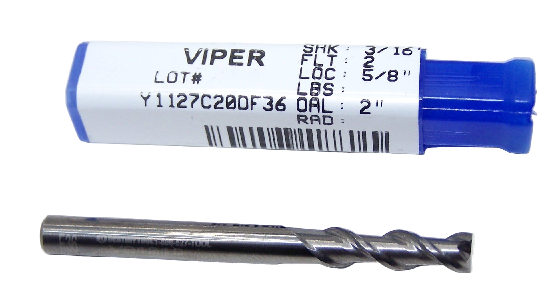 V21210 Destiny Tool 3/16" Carbide 2 Flute End Mill Viper SQ for Aluminum .1875" Diameter .625" Flute 2.0" Length .188" Shank